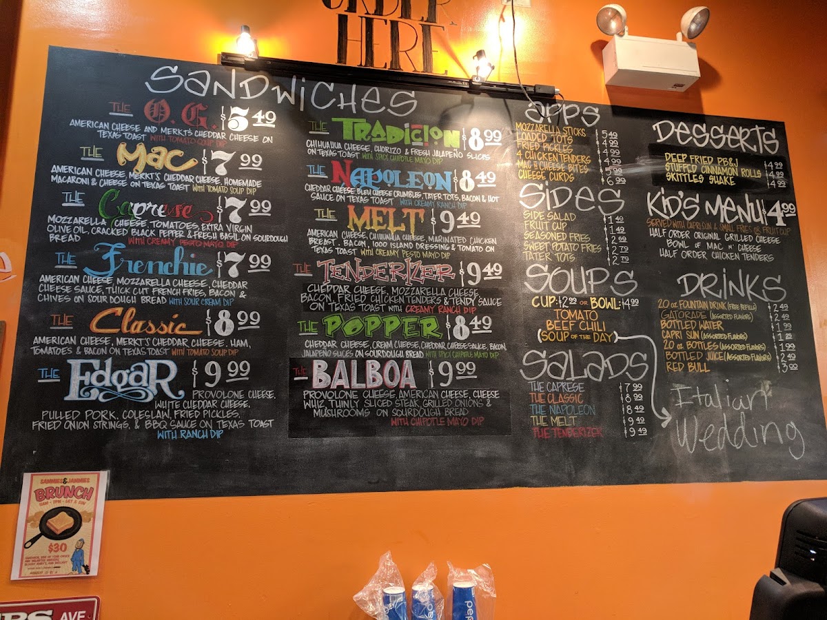 American cheese, cheddar cheese spread and housemade macaroni and cheese on Texas toast. Served w/ tomato soup dipping sauce.